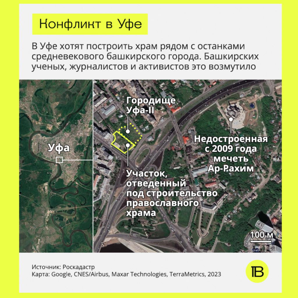 Башкирскую националистку Рамилю Саитову, местных учёных, активистов и журналистов возмутило не только то, что православный храм строят рядом с останками средневекового башкирского города. В конфликте есть ещё одна важная сторона — храм строится на въезде в город, недалеко от главного городского недостроя — мечети «Ар-Рахим».