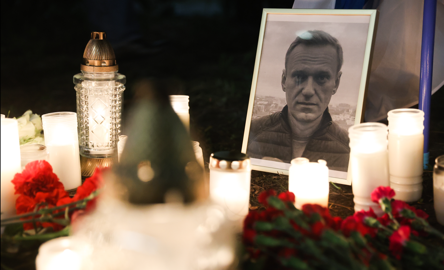 ФОТО: Фотография Алексея Навального и свечи перед консульством России в Кракове, 16 февраля 2024 года. Якуб Пожицки/NurPhoto