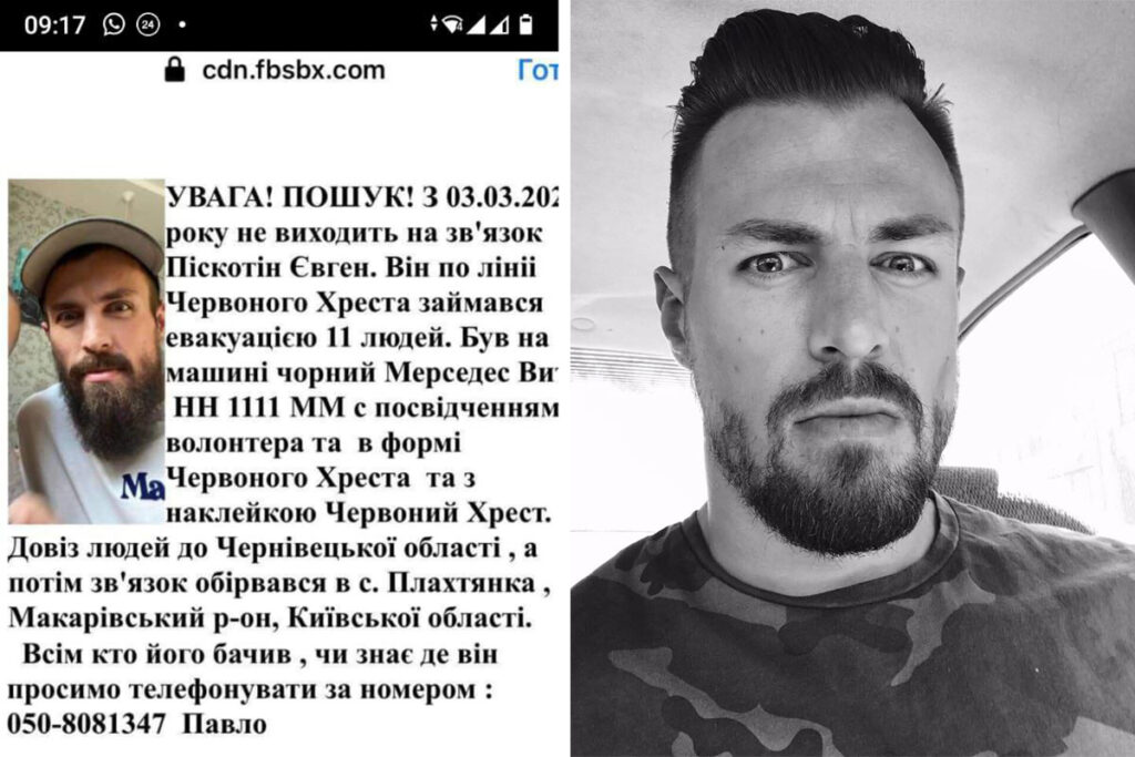 Также на территории села обнаружили тело 35-летнего волонтёра Красного Креста Евгения Пискотина. Рядом стоял его сгоревший микроавтобус. До этого он не выходил на связь с 3 марта.
