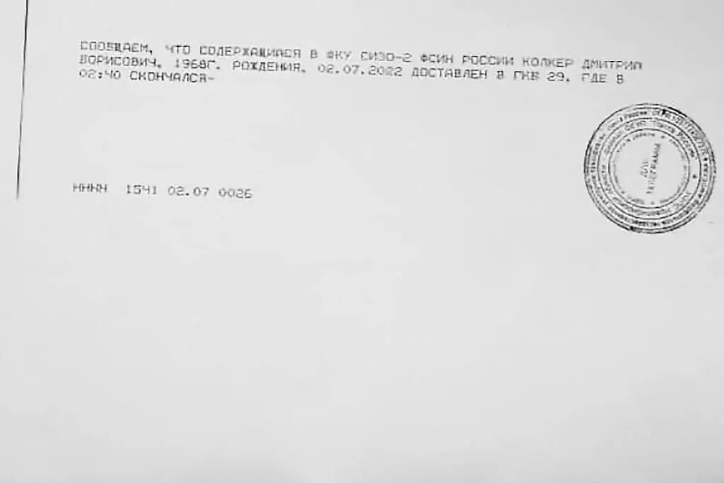 Второго июля Дмитрий Колкер умер. Его семье сообщили об этом с помощью телеграммы. Близкие так и не смогли увидеться с ним перед смертью.