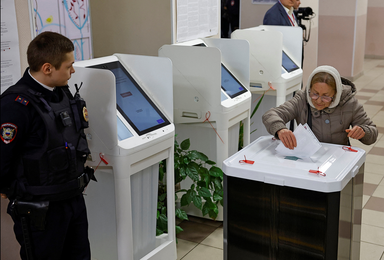 Фото: женщина опускает бюллетень на избирательном участке во время президентских выборов. REUTERS/Евгения Новоженина