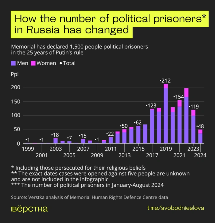 From one a year to several hundred: how the number of political prisoners in Russia has skyrocketed under Vladimir Putin