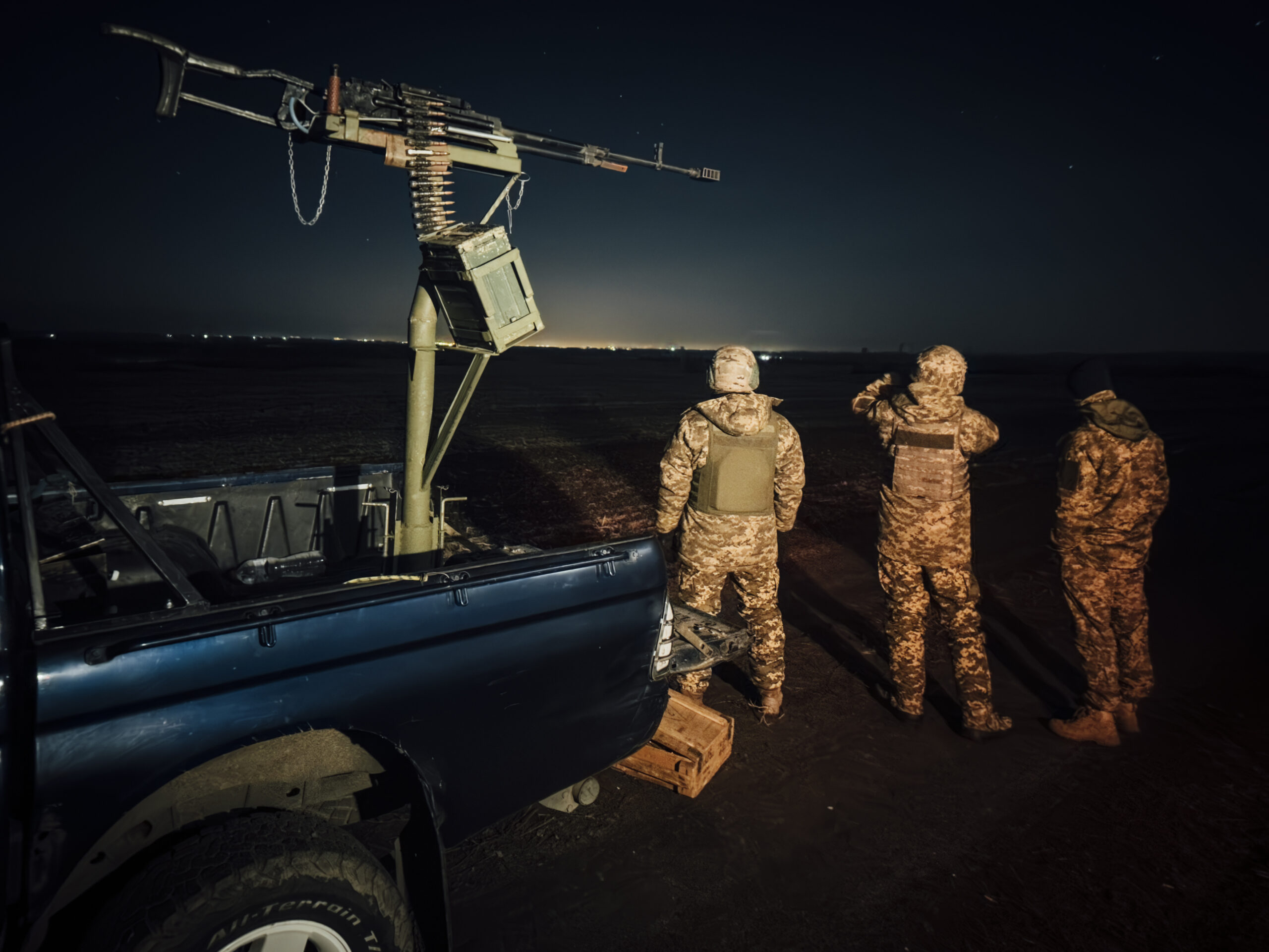 Фото: Мобильная бригада территориальной обороны патрулирует небо под Сумами. Adrien Vautier via Reuters Connect