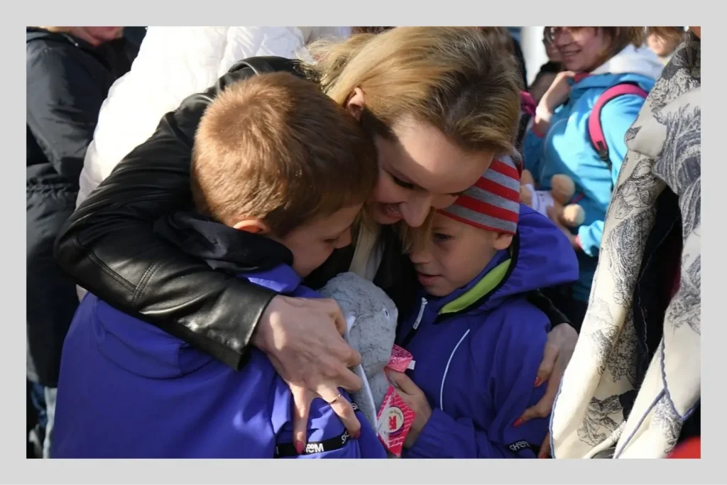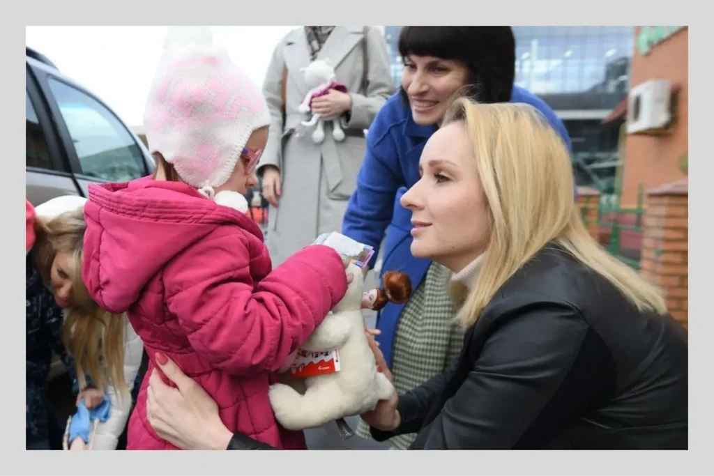 Львова-Белова нередко лично сопровождала детей из оккупированных территорий во время «эвакуации» в РФ. Иногда она буквально передавала их в руки новым приёмным родителям — и не сдерживала слёз умиления и счастья.