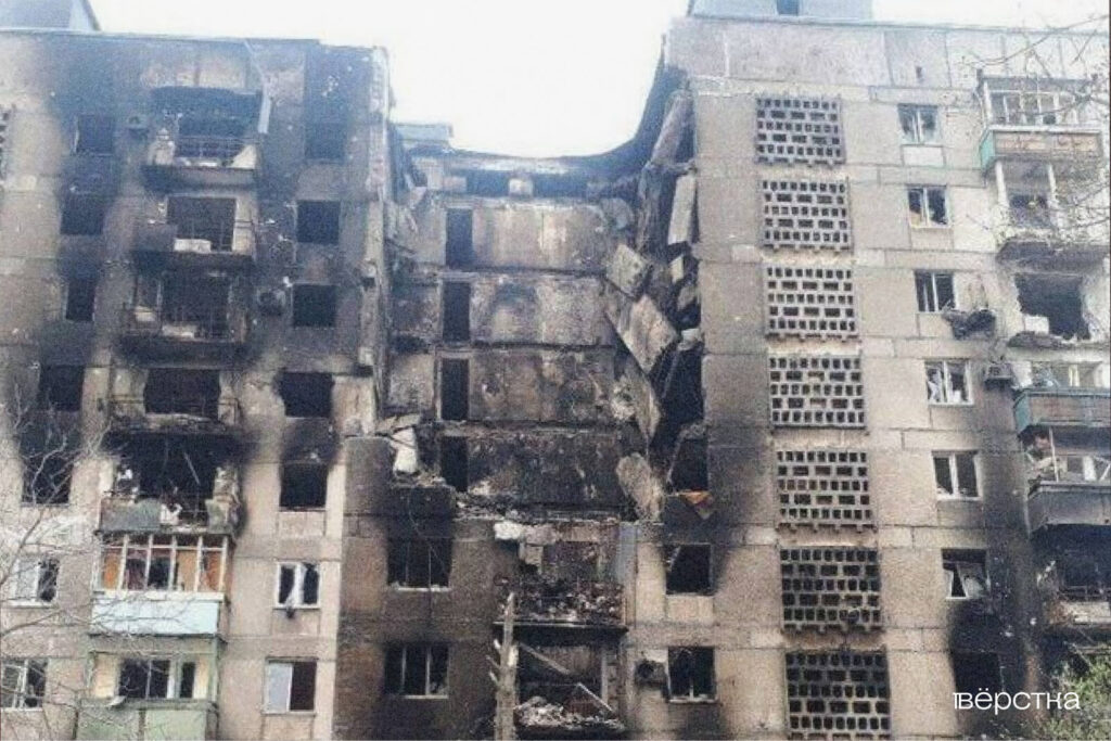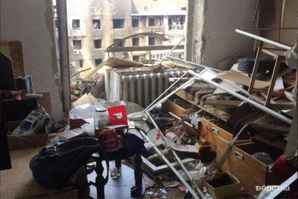 Во дворе, возле клумб и детской площадки с безопасным покрытием, стоял танк с надписью ДНР, крутил башней и стрелял то по одному дому, то по другому. 2 марта было первое попадание в наш подъезд.