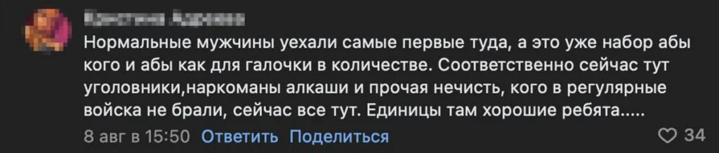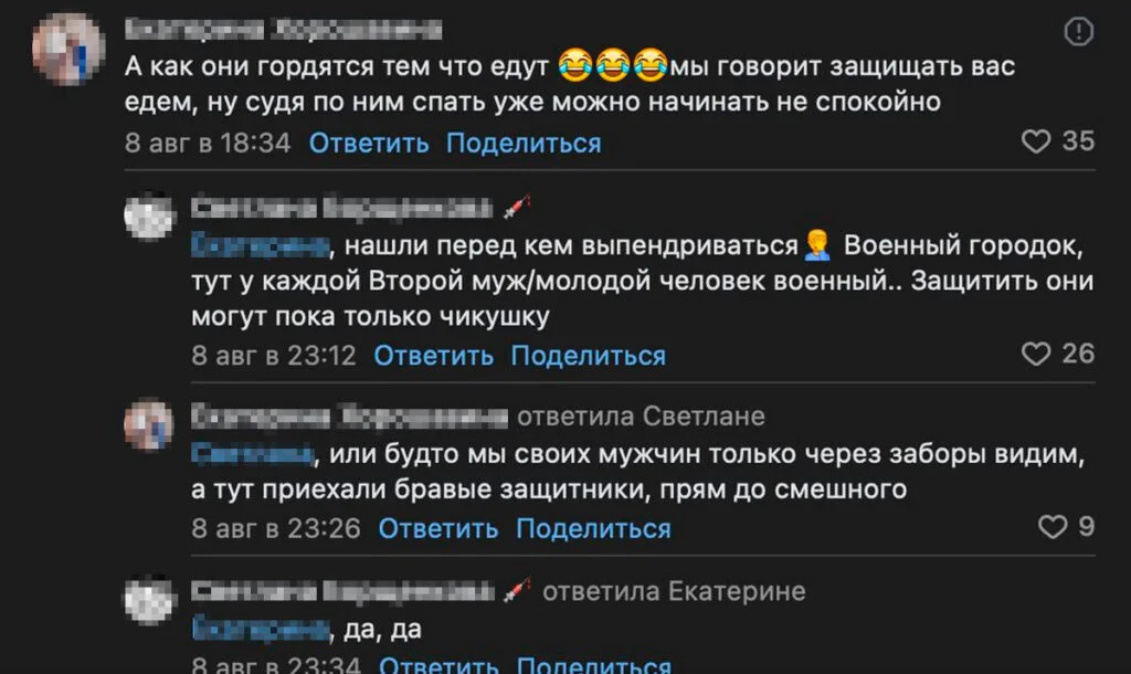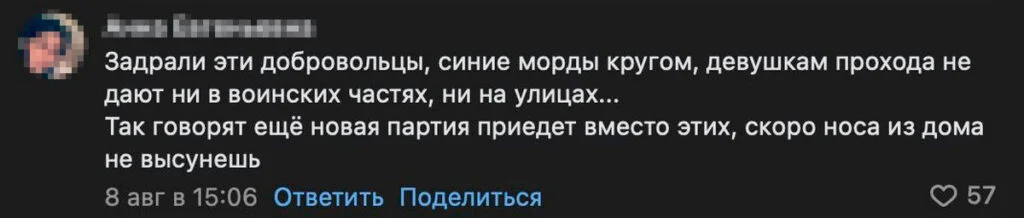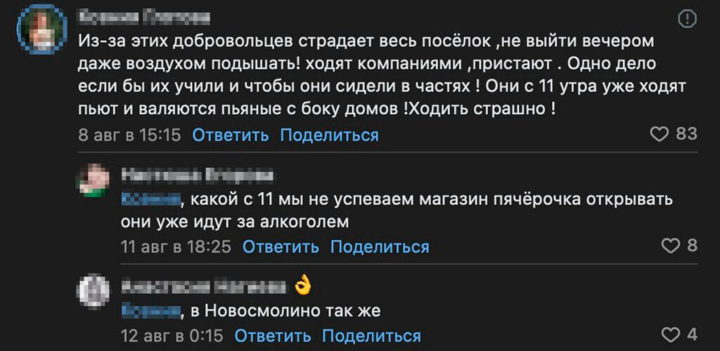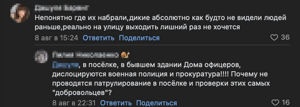 Также пользователи писали, что новые контрактники гуляют по улицам пьяными, пристают к девушкам, провоцируют драки. Из-за этого многие боятся выходить на улицу по вечерам.