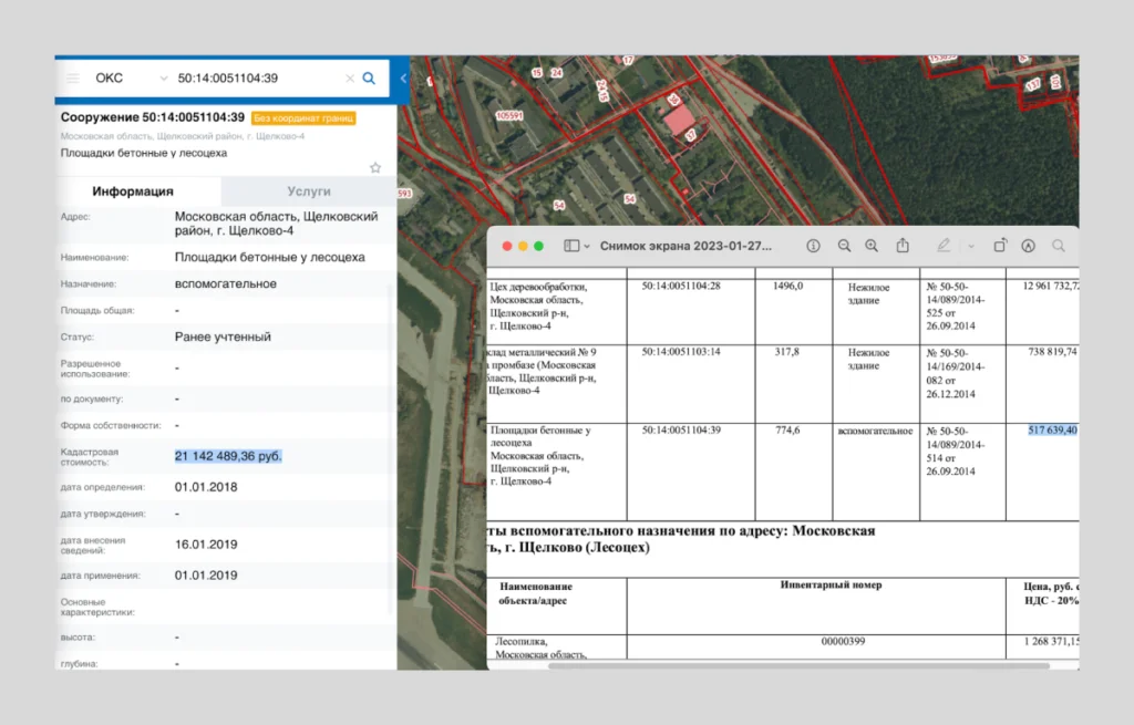Как следует из кадастровых выписок (есть у «Вёрстки»), все эти объекты перешли в собственность «Мегалайна» за два месяца до войны — в конце 2021 года. При этом в документах стоимость некоторых объектов серьёзно занижена (например, здание солдатской столовой МО оценило в 8,2 млн рублей, хотя его кадастровая стоимость составляет 44,8 млн, по данным Росреестра; площадки бетонные у лесоцеха МО оценило в 518 тысяч рублей, а их реальная кадастровая стоимость — в 40 раз выше и составляет 21,1 млн). По подсчётам «Вёрстки», суммарно вся недвижимость, переданная «Мегалайну», стоит около 466 млн рублей, хотя Минобороны оценило её всего в 328 млн. Таким образом, российский бюджет на этой сомнительной сделке мог потерять более 138 млн рублей.