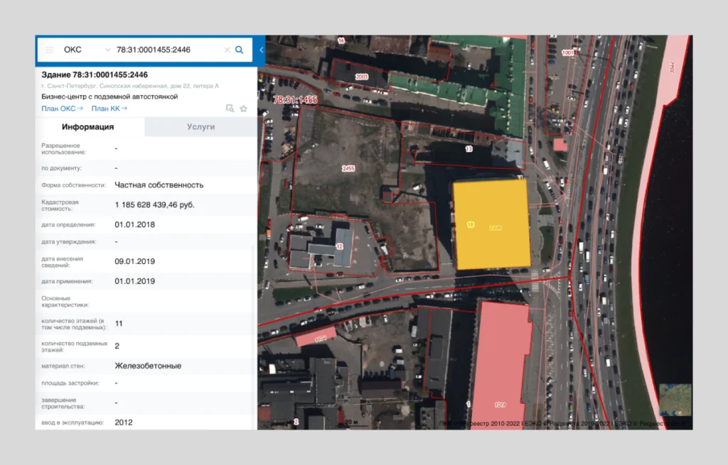 В кадастровой выписке указано, что супруге Пригожина принадлежит участок в 6,3 тысячи кв. м. Судя по спутниковым снимкам, на этих землях действительно стоят несколько зданий, как и указывал ФБК. Площадь первого особняка — 612 кв. м, второго — 734 кв. м. Но есть одна странность — участок Пригожиной вплотную прилегает к земле с той самой вертолётной площадкой. Однако Росреестр скрывает собственника формулировкой «Запрашиваемые сведения отсутствуют».