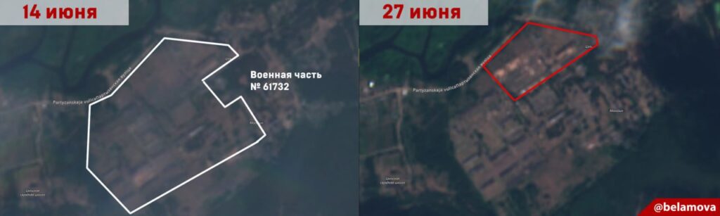 Снимки воинской части были сделаны 14 и 27 июня. На снимках от 14 числа следов какой-либо активности на территории базы не видно. Однако на изображениях за 27 июня уже чётко видно новые постройки.
