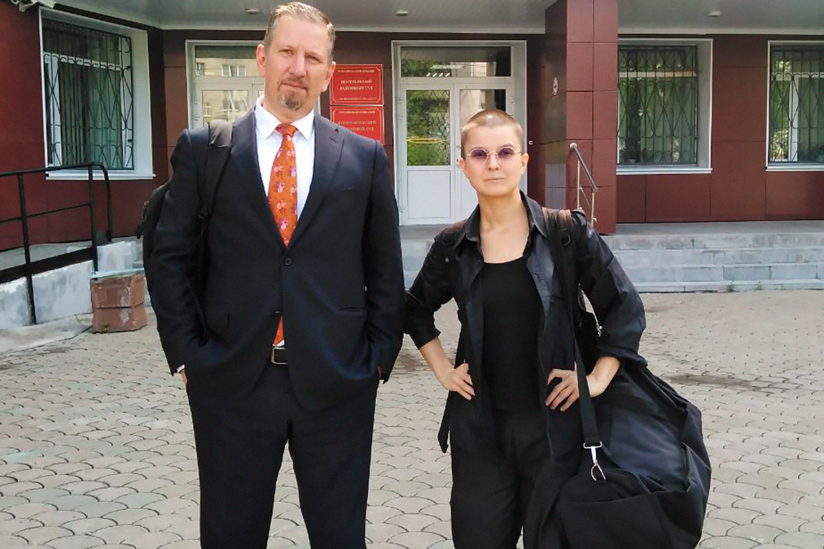 Фото обложки: Юлия Цветкова с адвокатом Александром Пиховкиным у здания суда из telegram-каналa «Я/Мы Юлия Цветкова»