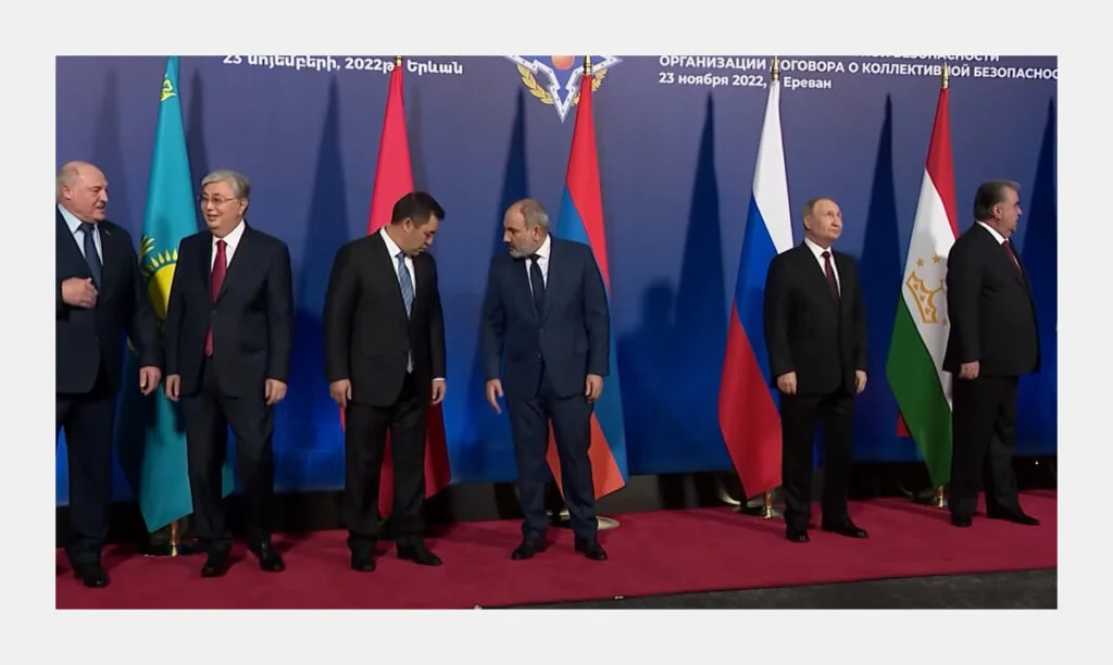 После начала войны Путин посетил все бывшие советские республики Средней Азии. Почти все визиты были связаны с работой международных организаций: ШОС, ОДКБ, СНГ. Даже здесь получалось не всегда удовлетворительно. Впервые ему приходилось ждать своих визави, а во время встречи в Астане Путин был вынужден выслушивать нотации от главы беднейшей страны СНГ — президента Таджикистана Эмомали Рахмона. Тот говорил Путину про «малые народы», которые хотят, «чтобы их уважали», и указывал, что «СССР развалился» из-за пренебрежения Москвы к окраинам. А на ереванском саммите ОДКБ премьер Армении Никол Пашинян демонстративно отказался подписывать итоговое заявление организации из-за отсутствия в проекте этого документа позиции ОДКБ по поводу конфликта в Нагорном Карабахе.