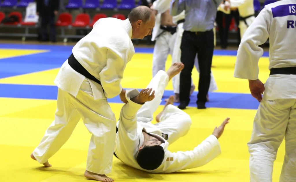 Образ мужчины, который бряцает оружием и готов решать вопросы силой, достаточно быстро получил расширение в виде мемов, где этот мужчина (пусть и в воображаемой вселенной) уже решает вопрос силой. Движение «Молодая Гвардия» устроила выставку, где в числе прочих экспонировалось изображение Путина, который в поединке дзюдо побеждает американского президента Барака Обаму. Посыл таких картинок построен на мнимой логической связи: Путин физически сильнее Обамы и лучше него владеет боевыми искусствами, следовательно, Россия сильнее Америки.