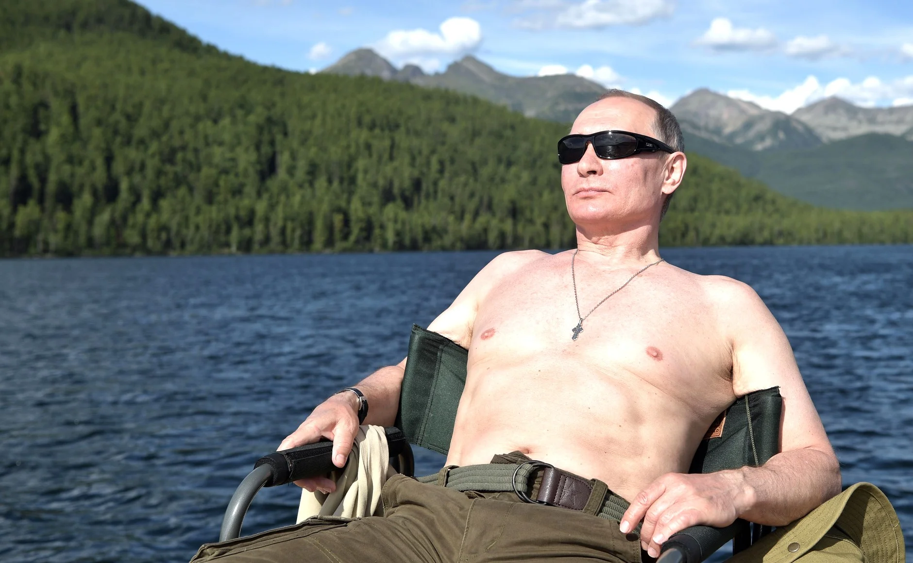Параллельно Путин утверждался и в другом предельно маскулинном образе — демонстрировал себя публике как настоящий мачо. Фотографировался с голым торсом на лошади, поднимался в небо на дельтаплане, в новостях подчеркивали, что глава России отдыхает в Сибири — то есть отдых был экстремальным, в народе считающимся «мужским». Президент рыбачил, ночевал в палатке, компанию ему стал составлять глава МЧС Сергей Шойгу — путинский туроператор маскулинного отдыха.