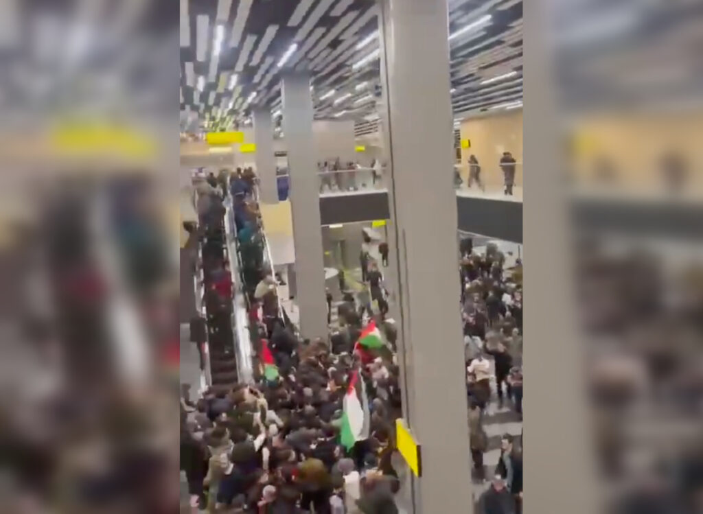 29 октября антисемитские протесты в соцсетях и разовые уличные акции обернулись погромом в столичном аэропорту «Уйташ». К 19.00 там ждали самолёт из Тель-Авива. К этому времени там собралось около 2000 человек с плакатами «Детоубийцам — нет места в Дагестане», «Мы против еврейских беженцев» и флагами Палестины.