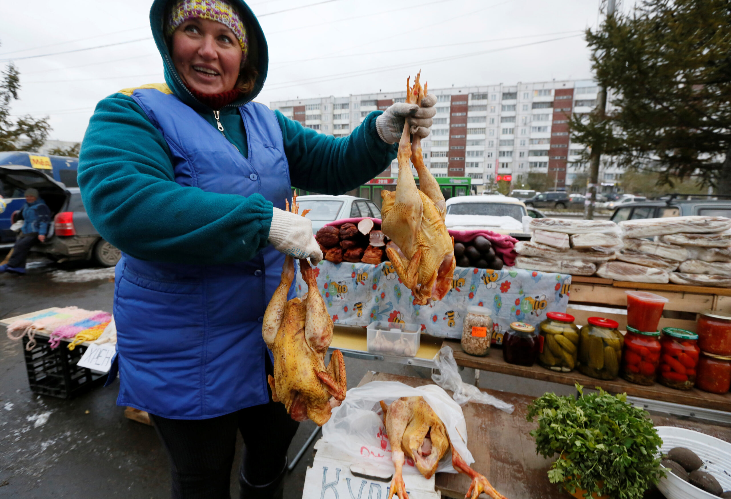 Фото: Женщина на рынке в Красноярске продаёт птицу. REUTERS/Ilya Naymushin