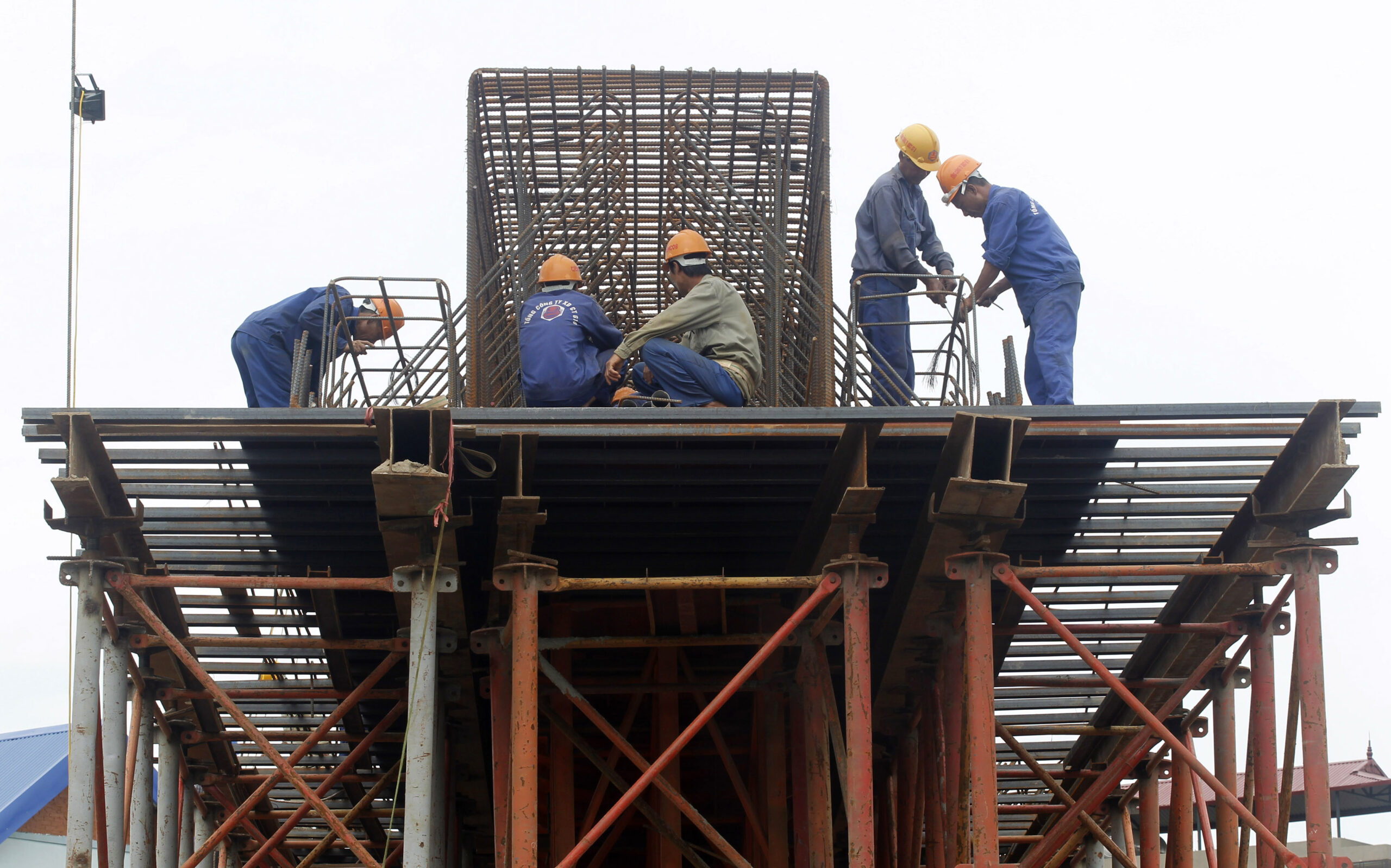 Фото: Рабочие из Вьетнама возводят строительные конструкции в Ханое. REUTERS