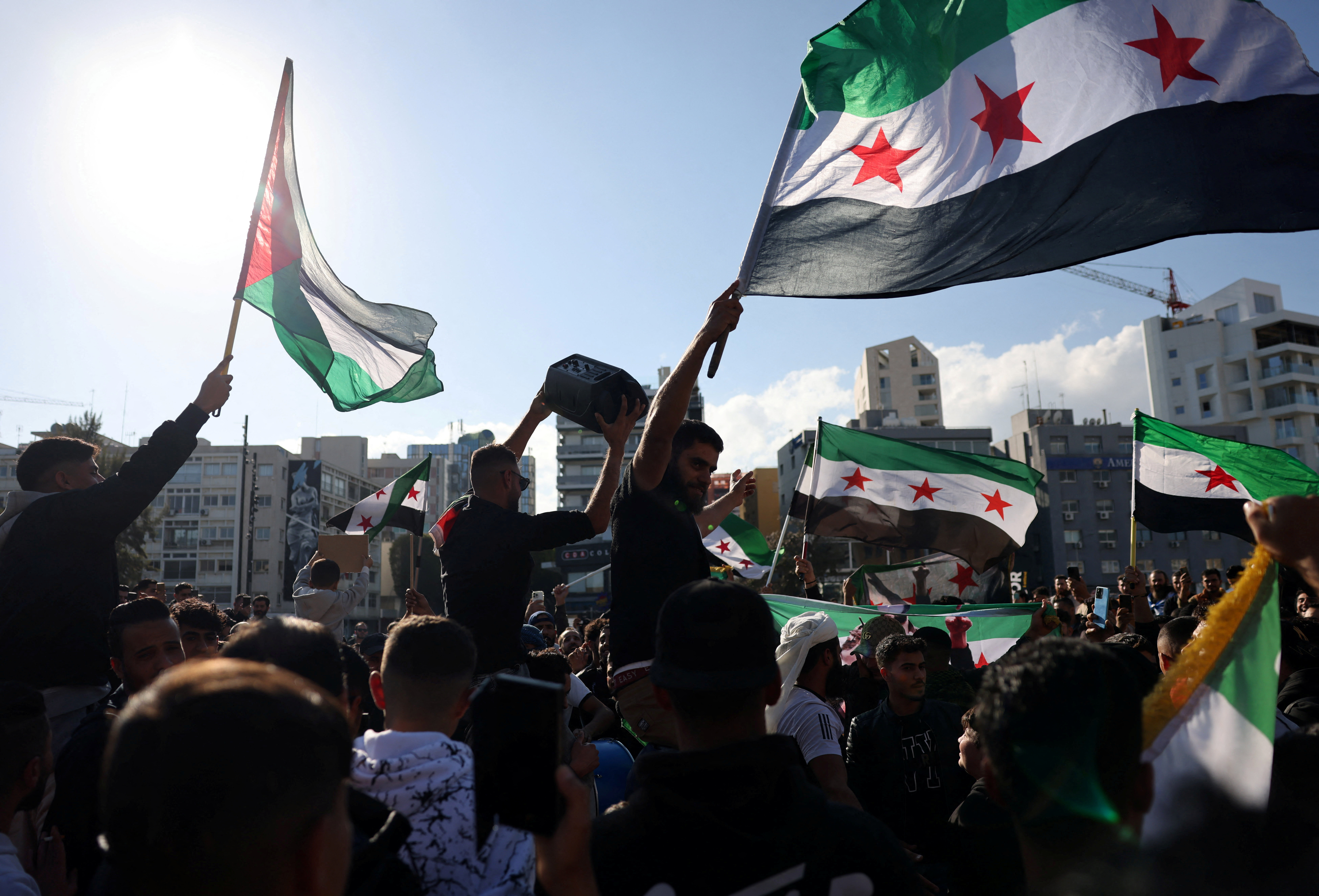По сообщениям новостных агентств, на центральную площадь Дамаска вышли тысячи людей, они кричат «Свобода». В соцсетях распространяются видео, на которых люди в Дамаске стреляют в воздух, сжигают портреты Башара Асада и сносят памятники его отцу Хафезу Асаду.