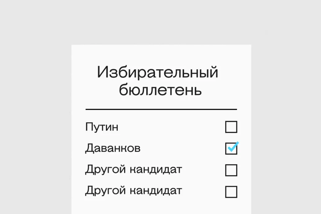 В России 15–17 марта пройдут выборы президента. Открытых оппонентов Владимира Путина и кандидатов, прямо выступающих против войны в Украине, среди трёх номинальных «конкурентов» Путина нет. Действующего президента, по данным Russian Field на начало марта, готовы поддержать 81,8% от числа избирателей, собирающихся голосовать. Оппозиционные политики предложили четыре варианта действий на выборах для россиян, выступающих против войны и Путина: от полного бойкота до голосования за выдвиженца «Новых людей» Владислава Даванкова. «Вёрстка» разобралась в предложенных стратегиях.