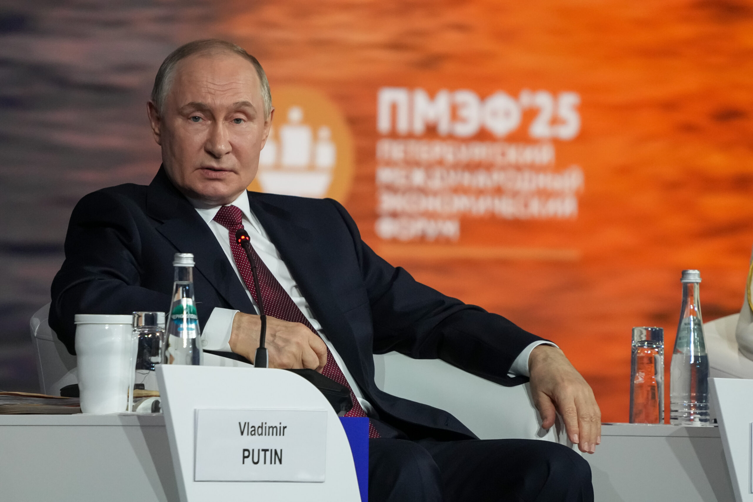 Фото: Владимир Путин выступает на пленарном заседании ПМЭФ-2025, Санкт-Петербург, 20 июня 2025 года. Сайт ПМЭФ/Сергей Шинов