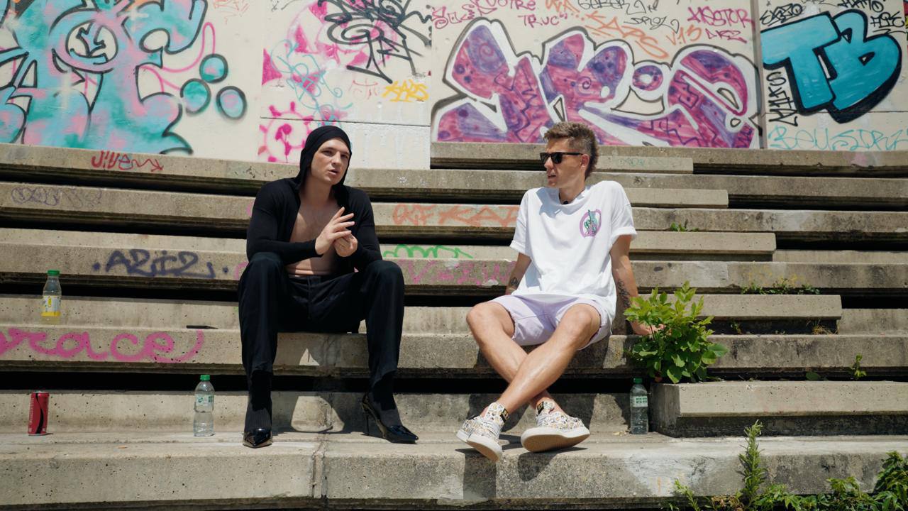 Фото: Юрий Дудь (слева) во время съёмок интервью с музыкантом Vacío. Телеграм-канал Юрия Дудя/@yurydud