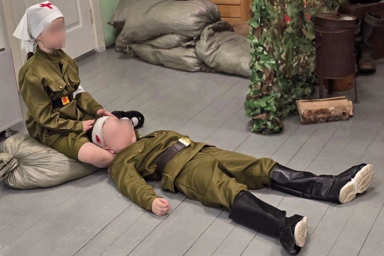 В Пачинском детском саду Кемеровской области девочки в военной форме целились во врага с игрушечными пистолетами в руках. В детском саду «Оленёнок» Архангельской области дети изображали медсестру и солдата с пулевым ранением в голову.