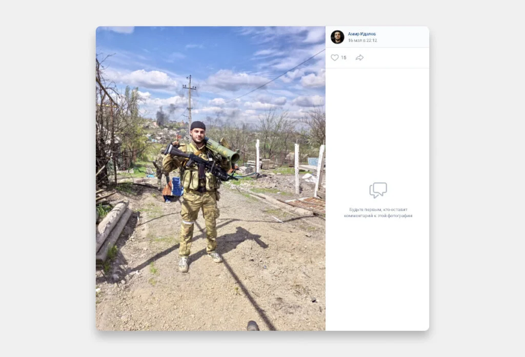 В мае 2022 года Идалов опубликовал несколько фотографий, на которых он одет в военную форму и держит в руках оружие. На одном из снимков он стоит на бронетранспортёре, на котором нарисована буква Z. Предположительно, эти фотографии были сделаны в Украине.