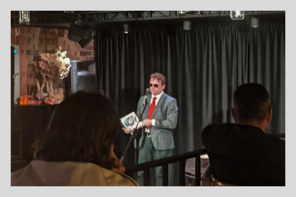 Там уже сидел критик Олег Демидов. Уже после вечера он «очень пожалел», что выбрал место в первом ряду, поскольку «где-то подальше ещё сильнее бы уловил атмосферу», и пообещал «потихоньку, по шажочку, двигать современную поэзию на её законное место — в основу основ русского бытия».