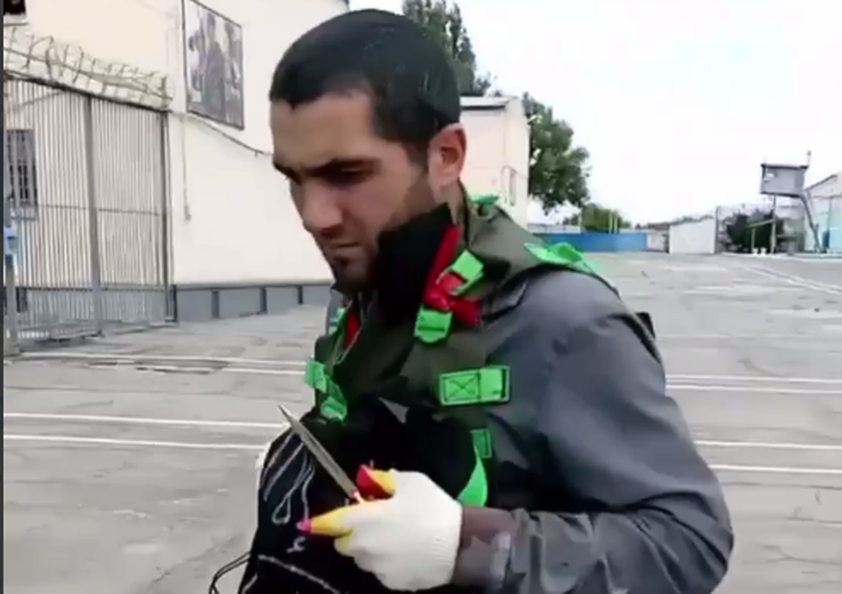 Фото: Один из террористов во дворе колонии